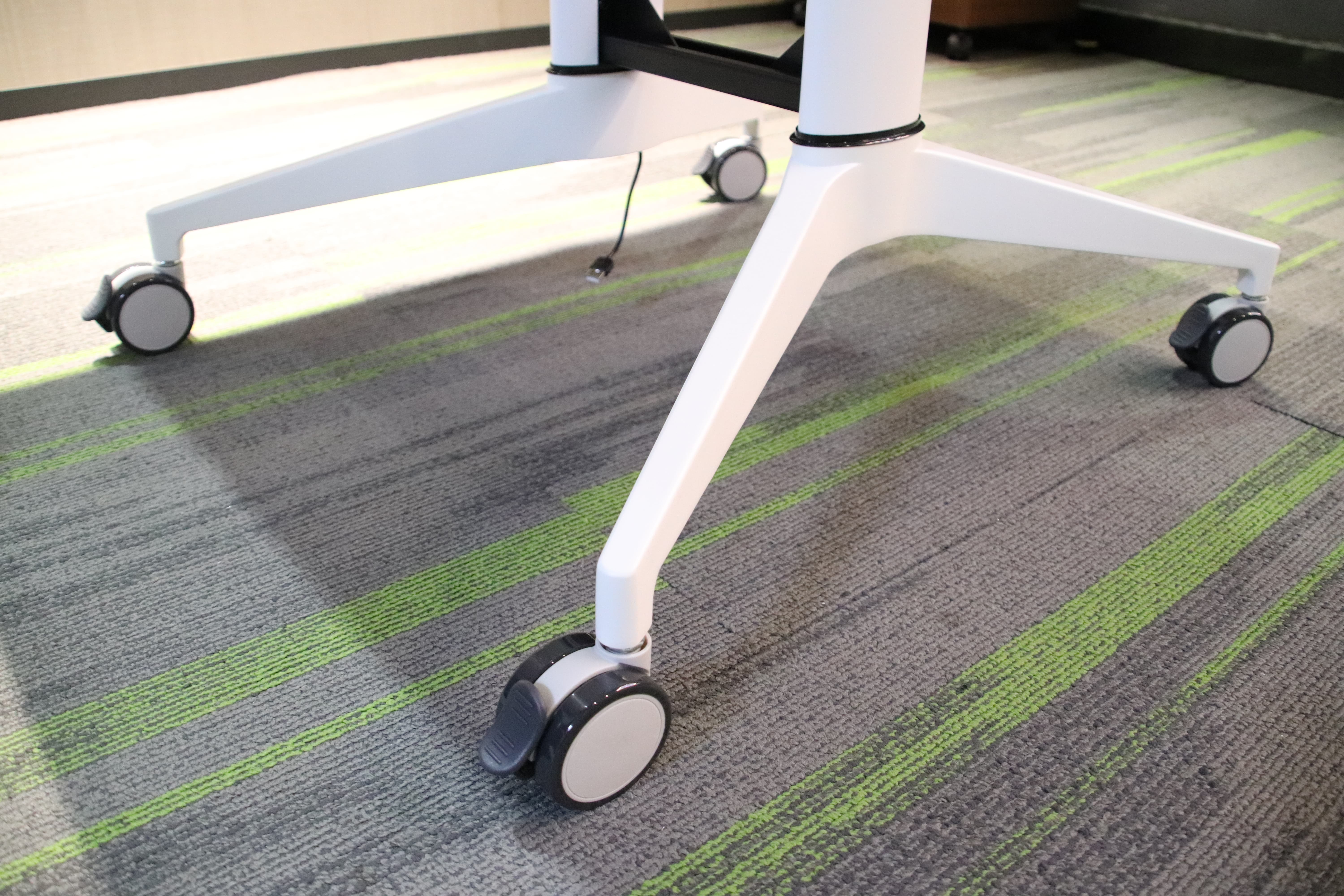 臺(tái)架:1、橫梁:厚度為2.0MM的冷軋鋼板;其和桌面精準(zhǔn)貼合,無需任何外物輔助,即可承重500斤以上的物品。2、立柱:厚度為2.0-3.0MM的擠壓型鋁材。3、底腳:厚度為3.0-4.0MM的壓鑄鋁材;跨度達(dá)650MM,以實(shí)現(xiàn)桌面更寬、更大,桌子更平穩(wěn)、更安全。4、腳輪:采用中國-西班牙合作最好的著名腳輪名牌“諾貝”,質(zhì)量保障,移動(dòng)順暢,帶剎車功能。隱藏式走線設(shè)計(jì):支持從桌架立柱走線,使辦公環(huán)境更整潔。