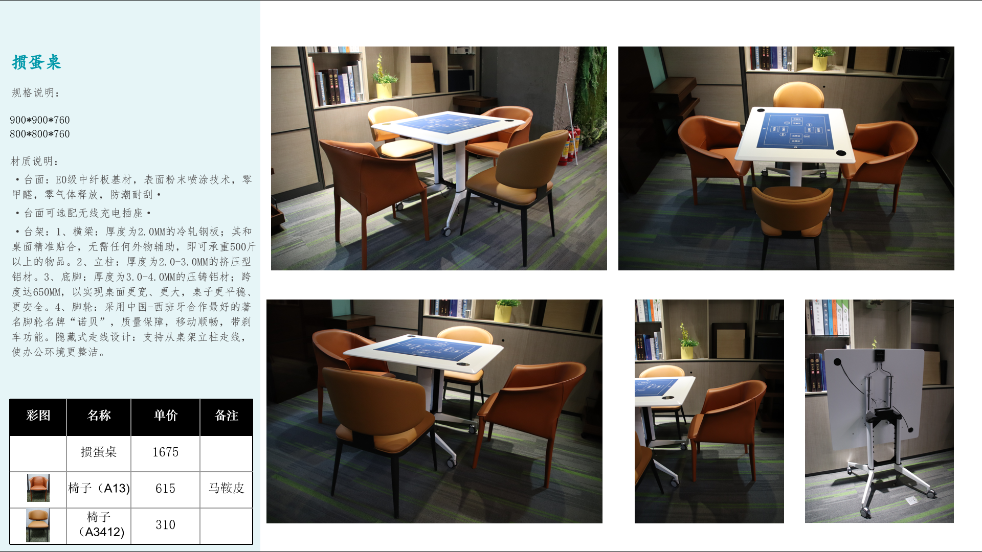 材質(zhì)說明:臺(tái)面:E0級(jí)中纖板基材,表面粉末噴涂技術(shù),零甲醛,零氣體釋放,防潮耐刮;臺(tái)面可選配無線充電插座。